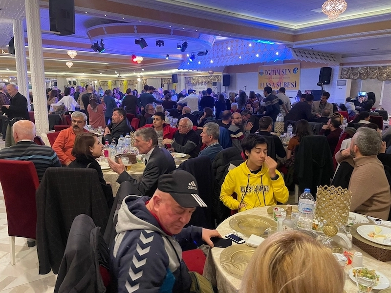 KESK’e bağlı Eğitim ve Bilim Emekçileri Sendikası Eğitim Sen Bursa’da üyeleri ve emek dostlarıyla bir araya geldiği gecede 28. yılını kutladı. Eğitim emekçilerinin yoğun katılım gösterdiği gecede konuşan Eğitim Sen Bursa Şube Sekreteri Derviş Erdem, eğitimin ülkede geldiği durumu değerlendirdi.