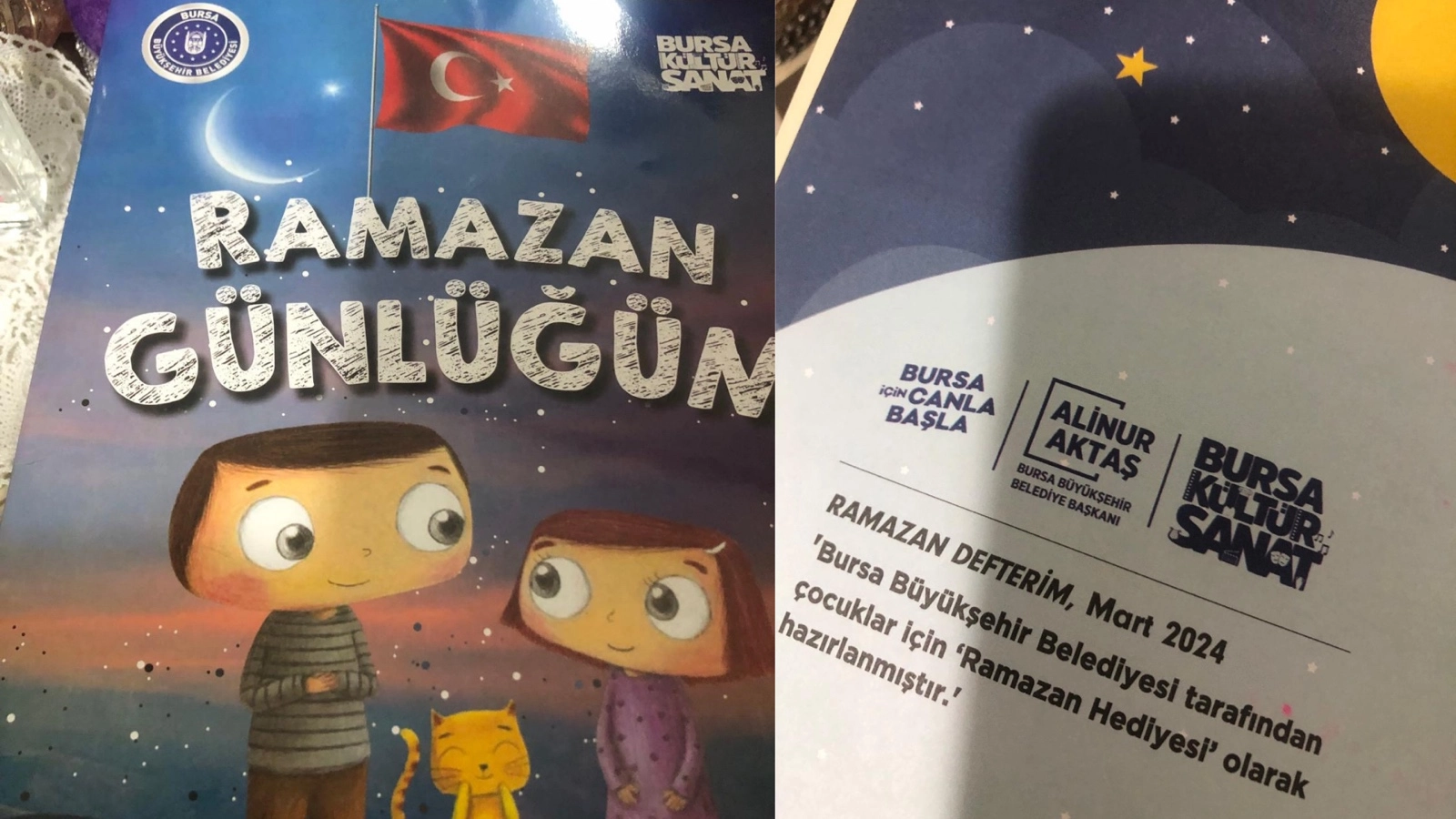 Okullarda AKP propagandasıYine aynı okulda Bursa Büyükşehir Belediyesi tarafından okuldaki bütün çocuklara ‘Ramazan Günlüğüm’ isimli kitap ücretsiz olarak dağıtıldığını vurgulayan Bebek, “Kitabı incelediğimizde belediyenin ücretsiz verdiği kitap görüntüsünden çok bir partinin belediye başkan adayının propagandasını yaparcasına belediye başkan adayının fotoğrafı ve seçim zamanı kullanılan ‘Bursa İçin Canla Başla’ sloganının yazılı olduğu görülüyor. Çocuklarımız üzerinden belediyenin kaynakları kullanılarak yapılan bu seçim propagandasını kınıyoruz” dedi.