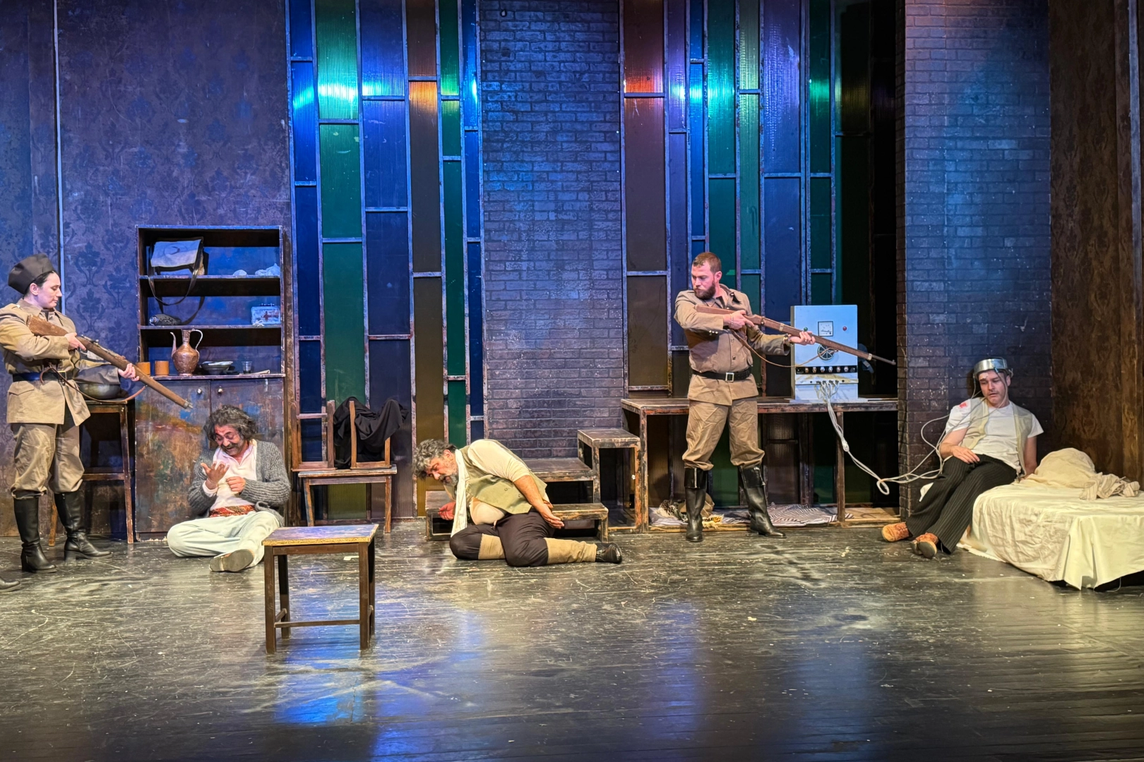 “Niye böyle oluyor ki? Birilerini öldürelim diye mi?” sorusu sahnede yankılanırken, izleyici koltuğunda oturan herkesi içine alan bir başka replik geçmişin ve bugünün ortak sancısını dile getiriyor. “Dünya güzel bir yer iken, toprak su herkesin iken birisi çıktı, ‘Burası benim’ dedi...”Kısacası “Bimarhane” geçmişin ve bugünün ortak sancısını dile getiriyor. Aklını, yüreğini ve vicdanını aynı çizgide tutanların dili, zaman ve mekan tanımaksızın buluşuyor sahnede. Bimarhane, savaşın ve yoksunluğun insanda yarattığı çatlakları gösterirken; mizahla karanlığı, dostlukla deliliği, gerçekle hayali ustalıkla iç içe geçiriyor. Ve bir kez daha sorduruyor: Kim deli, kim akıllı? Kim sadık, kim hain? Neyin doğru, neyin yanlış olduğuna kim karar verir? Sürprizlerle dolu finaliyle izleyicisini koltuğuna çivileyen “Bimarhane”, bu sezonun en çok konuşulacak yapımlarından biri olmaya aday. “Tiyatro iyileştirir” diyen Kafa Sahne “Bimarhane” ile bir kez daha soruyor: Biz bu hikâyenin neresindeyiz?