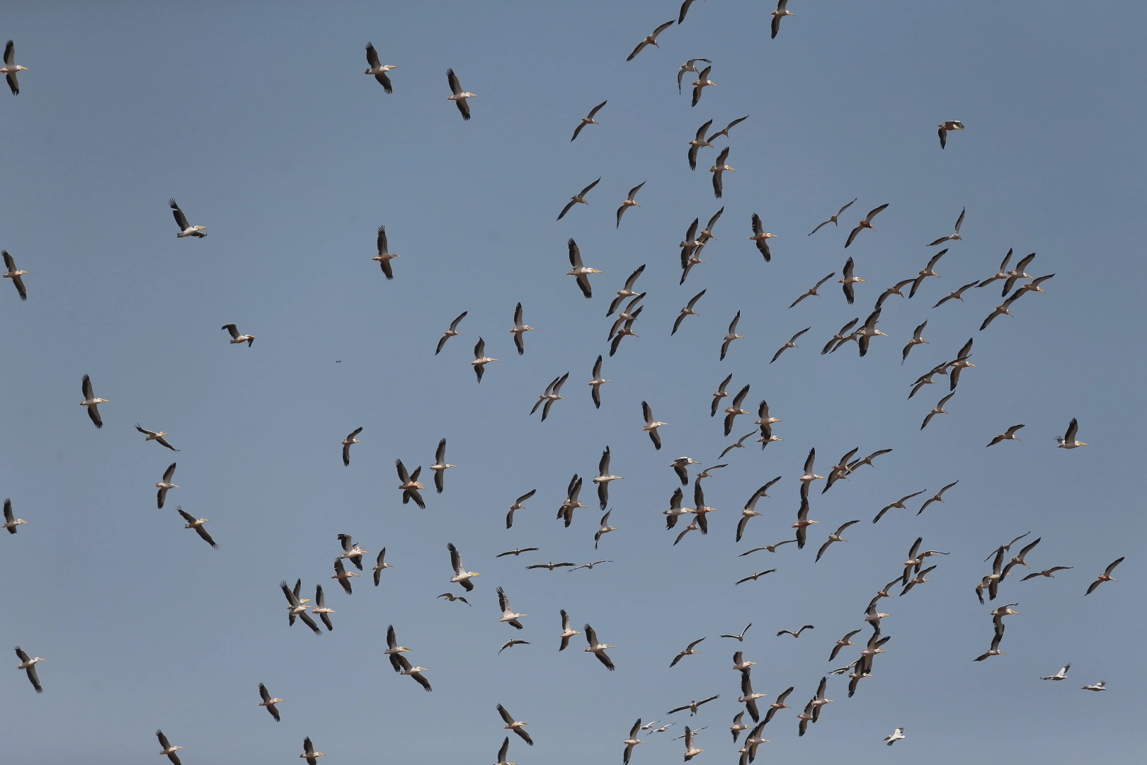 Bursa’nın Karacabey ilçesinin kıyı kesimleri ve Uluabat Gölü havzasını her yıl binlerce ak pelikan ziyaret ediyor. Bahar aylarının gelmesiyle gökyüzünde güzel görüntüler oluşturan pelikanlar, tarlaların ve gölün üzerinde süzülerek güneşin keyfini çıkarıyor. Hava akımını yakalayan pelikanlar aynı anda yerden yüzlerce metre yükseklikte uçmanın zevkini yaşarken, kuşların görüntüsü izleyenleri de büyülüyor. Pelikanların eşsiz görüntüleri drone ile havadan da görüntülenirken, yaz boyunca misafir olacakları toprakları bir kez daha keşfettiler.