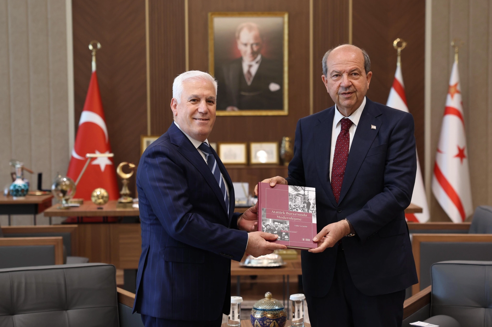 Bursa Büyükşehir Belediye Başkanı Mustafa Bozbey, Balkantürksiad üyeleriyle birlikte Cyprus Constructions ev sahipliğinde düzenlenen ‘Ekonomi, Yatırım ve Sinerji Zirvesi’ne katılmak üzere KKTC’ye gitti. CHP Bursa Milletvekili Hasan Öztürk ve Büyükşehir Belediyesi yöneticilerinin de yer aldığı ziyarette Başkan Mustafa Bozbey, KKTC Cumhurbaşkanı Ersin Tatar’ı makamında ziyaret etti. Cumhurbaşkanı Ersin Tatar’a Bursaspor forması ve ‘Atatürk Bursa'sında Modernleşme’ kitabını hediye eden Başkan Bozbey, “Görüşmemizde, Bursa ile KKTC arasındaki ikili ilişkilerin güçlendirilmesi, direkt uçuşların artarak devam etmesi, kültürel ve ekonomik iş birliklerinin artırılması konularını ele aldık. Kıbrıs Türklerinin menfaatlerini her zaman koruyacağımızı bir kez daha vurguluyorum. Cumhurbaşkanı Ersin Tatar’a ev sahipliği için teşekkür ediyorum” dedi. Başkan Mustafa Bozbey ve Balkantürksiad üyeleri, daha sonra Lefkoşa’da bulunan Barbarlık Müzesi’ni gezdi. Kıbrıs Türklerinin geçmişte yaşadığı büyük acılara, soykırım ve zulümlere tanıklık ettiklerini ifade eden Başkan Bozbey, “Tarihin karanlık sayfalarında yer alan bu trajedilerin unutulmaması ve benzer acıların bir daha yaşanmaması en büyük temennimizdir. Barbarlık Müzesi, sadece bir anma mekânı değildir. Aynı zamanda barışın, adaletin ve insan haklarının ne kadar kıymetli olduğunun da bir hatırlatıcısıdır. Bizler de tüm adada kalıcı ve sürdürülebilir bir barış ortamının sağlanması için üzerimize düşen sorumlulukları yerine getirmeye kararlılıkla devam edeceğiz” diye konuştu. Başkan Mustafa Bozbey, KKTC ziyaretleri kapsamında heyetle birlikte Lefkoşa Türk Belediyesi Başkanı Mehmet Harmancı’yı da makamında ziyaret etti. Lefkoşa ile Bursa arasında güçlü gönül köprüsü olduğunu söyleyen Başkan Bozbey, iki kent halkı arasındaki karşılıklı sevgi ve dayanışmanın, önümüzdeki süreçte daha da pekişerek; kültürel, sosyal ve ekonomik alanlarda ortak projelerle taçlanacağına inandığını dile getirdi.