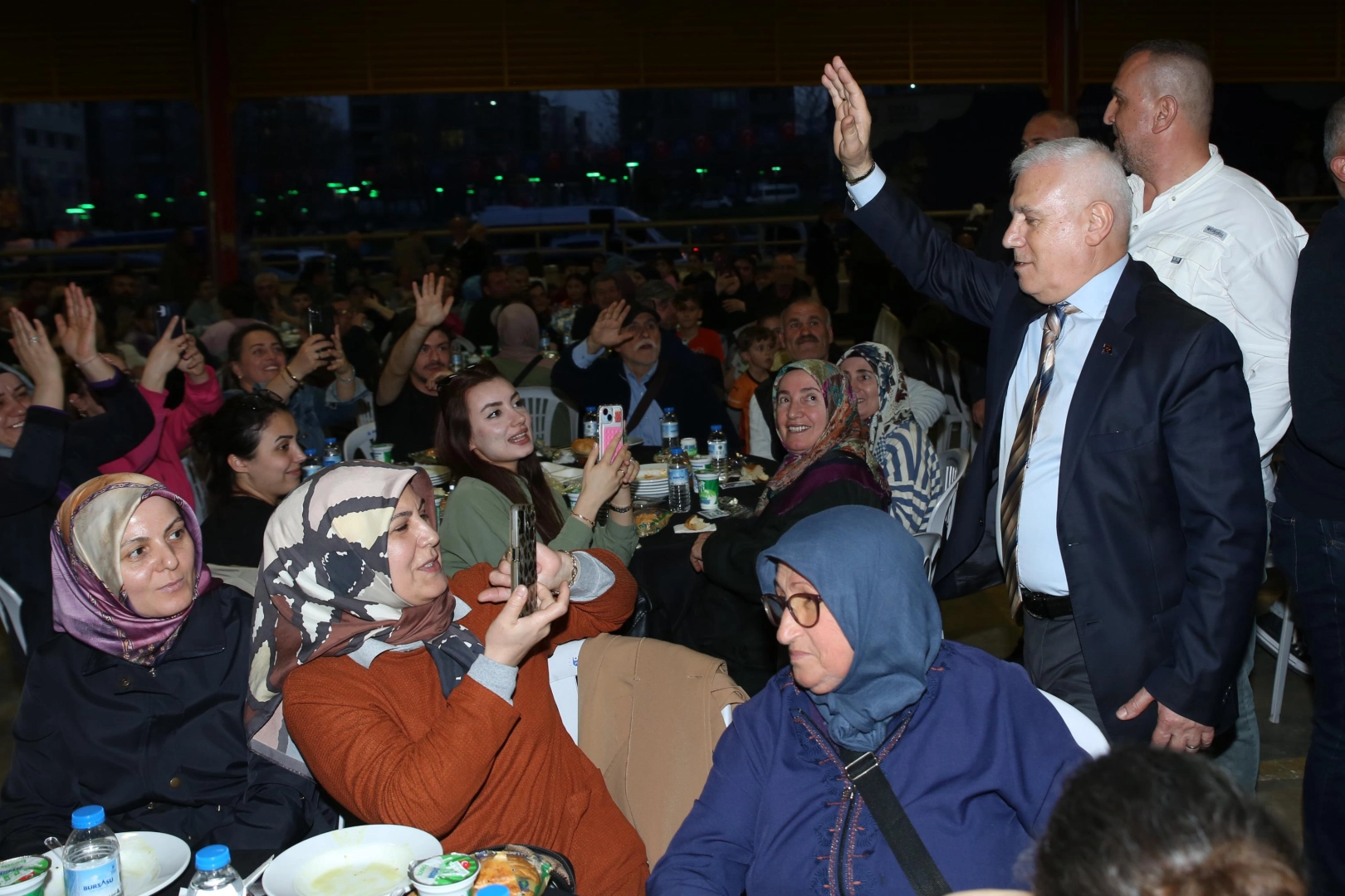 “Yatırımlarımıza devam ediyoruz”İftar sonrası konuşan Bursa Büyükşehir Belediye Başkanı Mustafa Bozbey, paylaşma ve dayanışma ayı olan Ramazan’da her zaman vatandaşın yanında olduklarını söyledi. Her akşam bir ilçede iftar programına katılarak 17 ilçeyi dolaştıklarını ifade eden Başkan Mustafa Bozbey, kentin en büyük ilçesi olan Osmangazi’nin sorunlarını da bildiklerini belirtti. Bugüne kadar çözülmemiş olan altyapı ve üstyapı çalışmalarını göreve geldikten sonra hızlı bir şekilde ele aldıklarını dile getiren Başkan Bozbey, “Bizler, Hamitler Mahallesi’nin sorunlarını biliyoruz. Burada kentsel dönüşümle ilgili çalışmalarımız devam ediyor. Hem vatandaşlarımızdan hem de muhtarlarımızdan gelen talepleri yerine getiriyoruz. Hamitler’in yüzü gülsün, mahallelerimizin yüzü gülsün istiyoruz. Yatırımlarımıza devam ediyoruz. İnşallah daha güzel günleri hep birlikte yaşayacağız” dedi. CHP Bursa İl Başkanı Nihat Yeşiltaş, kardeşliğin, dostluğun, dayanışmanın öne çıktığı Ramazan ayının tüm coğrafyaya barış, huzur ve bereket getirmesini diledi. İftar sonrasında Orkestra Şube Müdürlüğü tarafından mini bir konser verildi. Başkan Mustafa Bozbey, teravih namazı sonrasında Yunuseli Kalemdar Camii’nde vatandaşlarla bir araya gelerek tatlı ikramında bulundu. Başkan Bozbey, Bursa 1965 Samsunspor Taraftarlar Derneği'ni de ziyaret ederek mahalle halkıyla sohbet etti.