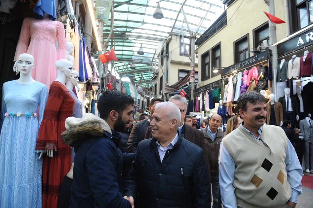 Bursa Büyükşehir Belediye Başkan Adayı Mustafa Bozbey, hafta sonunda Tahtakale, Nalbantoğlu Caddesi ve Açık Çarşı esnafıyla buluştu, vatandaşlarla sohbet etti. Halk ve esnafın büyük ilgi gösterdiği Mustafa Bozbey sorunları dinleyip çözüm önerilerini sundu.