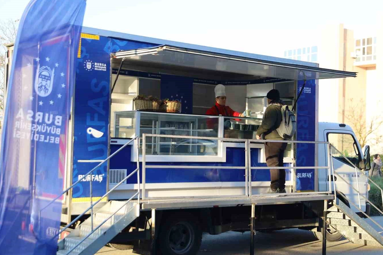 Bursa Büyükşehir Belediyesi, Bursa Uludağ Üniversitesi ve Bursa Teknik Üniversitesi’nde eğitim gören öğrencilere soğuk kış günlerinde ücretsiz sıcak çorba ikramında bulunuyor.