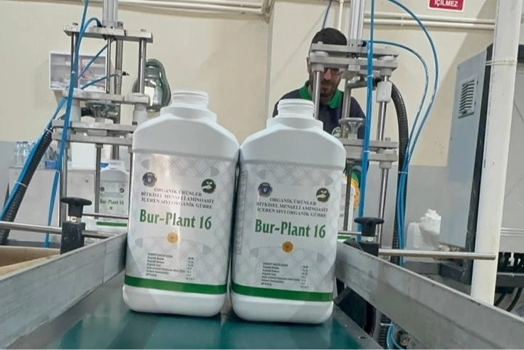 Tarım Peyzaj A.Ş'nin Mustafakemalpaşa'daki tesislerinde sıvı gübre üretimi aralıksız sürerken, ziraat odalarından gelen talep karşılanmaya çalışılıyor.