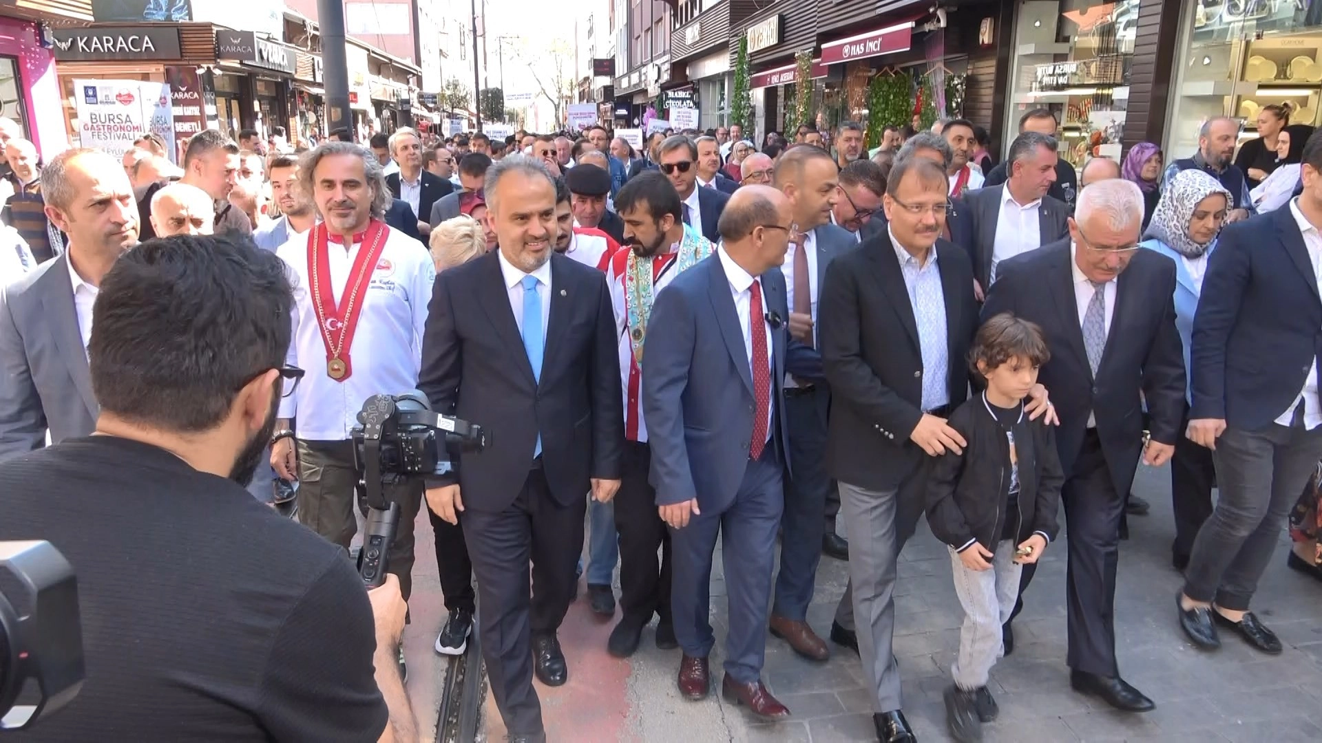 Bursa'da Master Show, Master Class, söyleşi, yarışma ve panellerde ünlü şeflerin yer alacağı, konserler ve gösterilerin de yer aldığı Bursa Gastronomi Festivali, kortej yürüyüşüyle başladı.