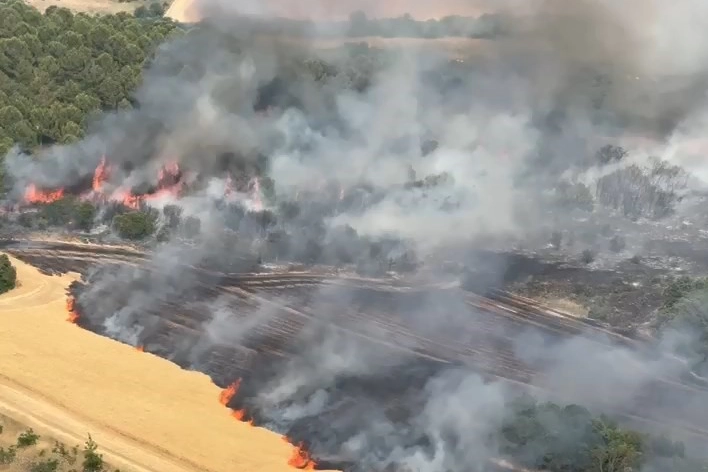 Bursa'nın Yenişehir ilçesi Demirboğa Mahallesindeki kırsa alanda bulunan buğday tarlalarından yükselen alevler, gökyüzünü dumanla kapladı. İhbar üzerine olay yerine Bursa Orman Bölge Müdürlüğü ekipleri hareket etti. 41 personel, 3 helikopter, 6 arazöz ve 2 su tankeri ile müdahale ederken, tarlanın ortasında kalan bir biçerdöver ise alevlere teslim oldu. Söndürme ekipleri, alevleri kontrol altına almaya çalışıyor.