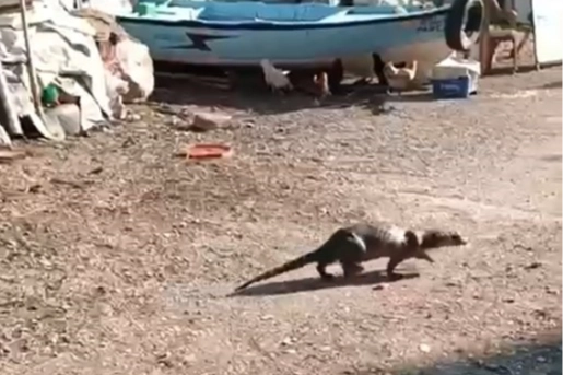 Karacaali Mahallesinde denizden çıkan başından hafif yaralı su samurunu önce mahallenin tavukları farketti. Tavukları peşine takan su samuru mahallede kısa bir tur attı. Bu sırada yaralı samuru farkeden çocuklar onu önce fare sandı. Balıkçılar tarafından yakalanan balıklardan aşırıp yemeye başlayınca su samuru olduğu anlaşıldı. Kaçırdığı balıkları saklandığı kayalıkların altında afiyetle yiyen su samurunun bu mahareti mahallenin kedileri tarafından da ilgiyle izlendi.