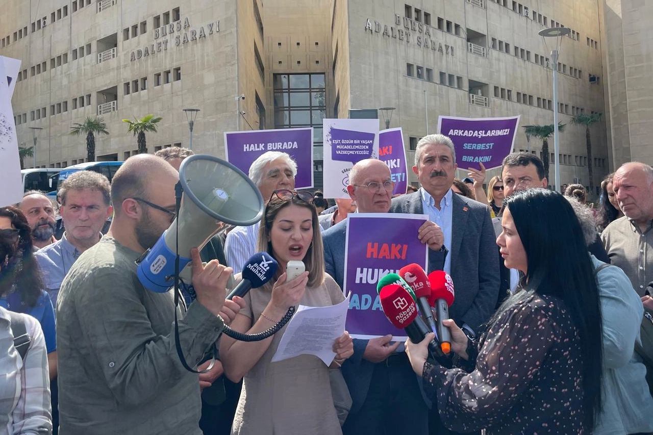 Bursa'da İmamoğlu'nun gözaltına alınmasıyla başlayan protestolarda 45 kişi gözaltına alınmış 4 kişi tutuklanmış, 6 kişiye ise ev hapsi verilmişti. İfadesi henüz alınmayanlar ise bugün adliyeye sevk edildi. Yaşanan gözaltı ve tutuklamalar Bursa Adliyesi önünde protesto edildi.