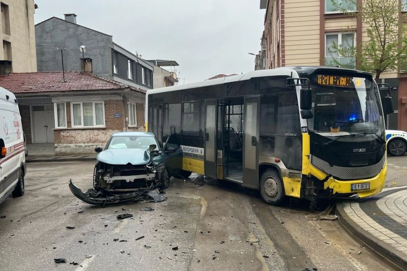 Kaza, saat 09.00 sıralarında Osmaniye Mahallesi Altay Caddesi üzerinde meydana geldi. Erdinç K.(33) yönetimindeki 16 M 06101 plakalı özel halk otobüsüne, Gaziler Sokaktan çıkan sürücü Dilek T.(27) yönetimindeki 16 ASH 563 plakalı Citroen otomobil yandan çarptı. Çarpmanın etkisiyle araçlar savruldu. Kaza sonucu otomobilin sürücüsü ile araçtaki yolcular Güler G.(40) ile Sena G.(26) yaralandı. Yaralılar kaza yerine sevk edilen Ambulansla İnegöl Devlet Hastanesine kaldırıldı. Polis kazayla ilgili soruşturma başlattı.