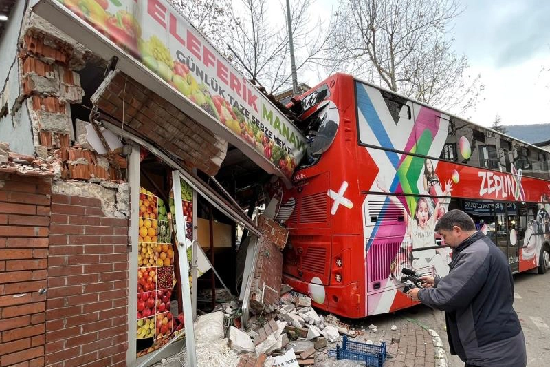 Alınan bilgiye göre, merkez Yıldırım ilçesi Teleferik Mahallesi'ndeki Nuri Erbak Anadolu Lisesi'ndeki öğrencileri tura götürmek için okulun önüne yanaşan 16 ZP 119 plakalı otobüsün imdat freni boşaldı. İçinde kimse yokken harekete geçen otobüs önce park halindeki bir otomobile daha sonra da manava çarparak durabildi. Şans eseri olaylda yaralanan olmazken, manavda çalışan bir kişi şoka girdi. Polis ekipleri otobüs sürücüsü Adem E.'nin ifadesine başvurdu. Manavda maddi hasar meydana gelirken, tur ise iptal edildi. Manav Vedat Sidal, otobüsün arka kapıdan öğrenci bindirirken imdat freninin boşaldığını ve kayıp park alindeki araca ve devamında aşağıdaki işyerine gelidğini belirterek, "O sırada bir çalışan vardı ve şoka girdi" dedi. Olayla ilgili soruşturma sürüyor.