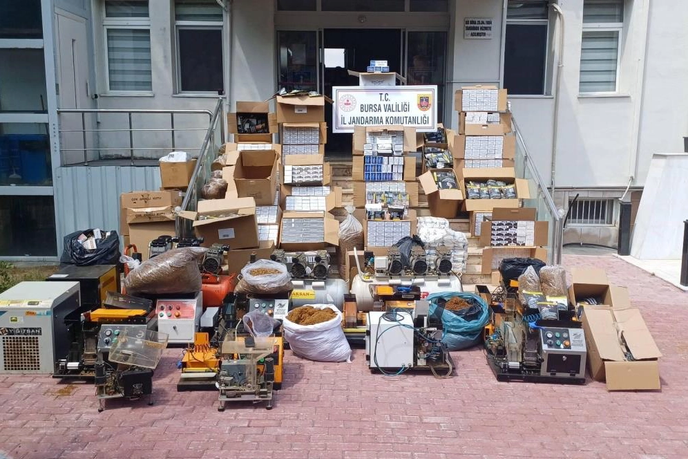 Bursa İl Jandarma Komutanlığı'nın kaçakçılıkla mücadelesi aralıksız devam ediyor. Gemlik İlçe Jandarma Komutanlığı, İstihbarat Şube Müdürlüğü ve Kaçakçılık ve Organize Suçlarla Mücadele Şube Müdürlüğü ekipleri tarafından kaçak sigara üretimi yapıldığı tespit edilen üç ayrı üretim tesisine eş zamanlı operasyon düzenlendi. Yapılan operasyonda 80 bin adet tütün basılı sigara, 301 bin 400 adet makaron, 173 kilogram kıyılmış tütün, 47 bin 400 adet boş sigara kutusu, 4 bin 800 adet sigara filtresi, 10 adet elektronik sigara basma makinesi, 4 adet kompresör ve 2 adet hava makinesi ele geçirildi. Yapılan operasyon sonucunda üretim yerlerinin V.A. (43), A.A. (43), E.O. (54) ve M.T. (52) isimli şahıslara ait olduğu tespit edildi. Şüpheli 4 kişi gözaltına alınarak haklarında adli işlem başlatıldı.