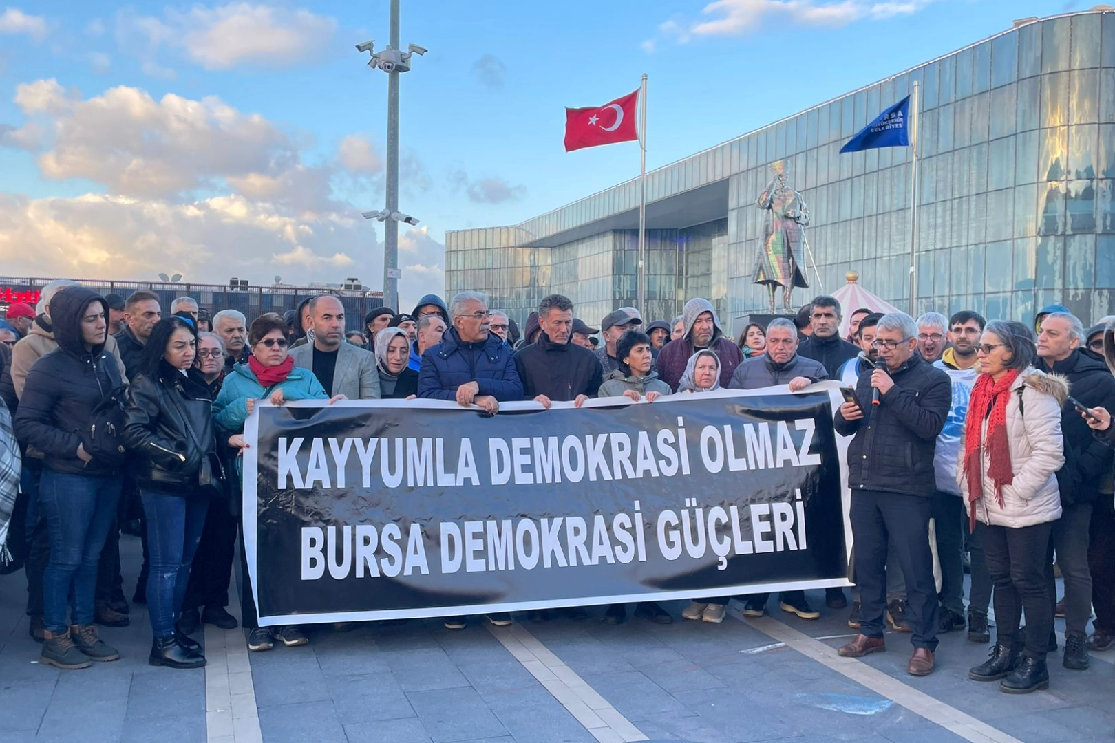 İçişleri Bakanlığı kararıyla Dersim ve Ovacık belediye eş başkanlarının görevden alınarak yerlerine kayyım atanması, Bursa'da protesto edildi.