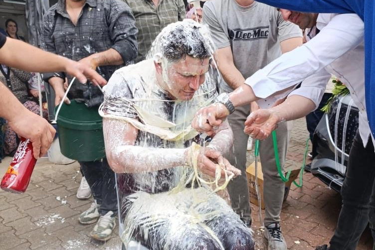 İznik ilçesi Boyalıca Mahallesi'nde İbrahim Sevinç isimli damat adayı ilginç bir düğün geleneği ile dünya evine girdi. Düğünde gelin alma sırasında damat İbrahim Sevinç, işkenceyi aratmayan şakalara maruz kaldı. Mahalle arkadaşları önce düğün konvoyunun önünü kesip damattan hediyeleri aldılar, ardından meydanda sandalyeye bağladılar. Arkadaşları, damadın başında yumurta kırıp, un, süt, ketçap ve mayonez döktü. Dakikalarca süren eğlence sonunda damat Sevinç, son olarak arkadaşları tarafından su dökülerek yıkandı. Görülmemiş eziyetin ardından damat düğüne uğurlandı.