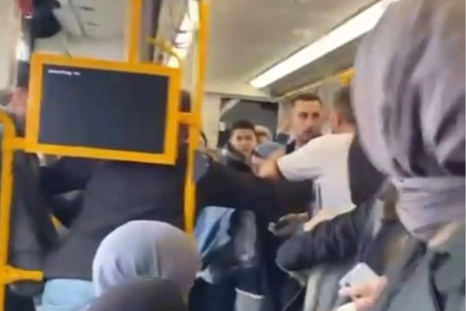Bursa’nın Osmangazi ilçesi Sırameşeler mevkiinde seyahat etmek için metroya binen iki vatandaş arasında bilinmeyen bir nedenle sözlü tartışma çıktı. Tansiyonun artmasıyla taraflardan biri, tartıştığı kişiye tekme atıp küfür etti. O anlar kameraya an be an yansırken, öfkeli tarafları vatandaşlar ayırdı.