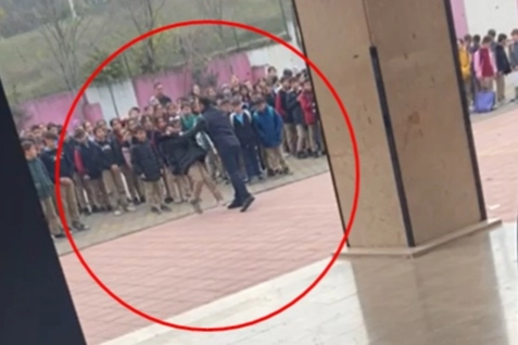 Öğrenciler bayrak töreni için sıradayken, okul müdürü Mustafa Ç., 11 yaşındaki Muhammed K. isimli öğrenciyi, iddiaya göre sıra düzenini bozduğu gerekçesiyle yanına çağırdı. Mustafa Ç., yakasından tuttuğu öğrenciyi, ittirdi.