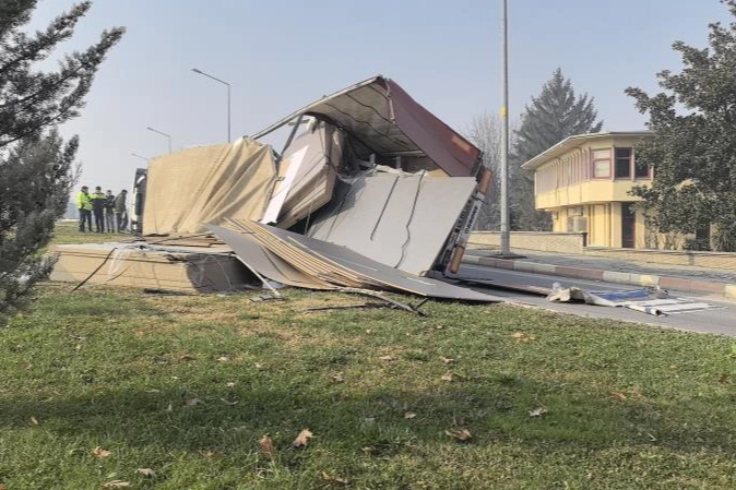 Kaza, saat 12.00 sıralarında Süleymaniye Mahallesi İnegöl Organize Sanayi Bölgesi Hikmet Şahin Köprülü Kavşağı'nda meydana geldi. Sürücü Mustafa Menteş (22), 16 Y 2729 plakalı tıra OSB'de faaliyet gösteren orman ürünleri fabrikasından yüklediği suntaları Gemlik ilçe limanına götürmek üzere yola çıktı. Kavşaktan dönüş yapmakta olan tır, sürücüsünün kontrolünden çıkarak devrildi. Devrilen tırın dorsesindeki suntalar yola saçıldı. Kaza sonucu kavşağın bir yönü ulaşıma kapanırken, sürücü kısa süreli şok yaşadı. Tırın kaldırılması için çalışma başlatıldı.