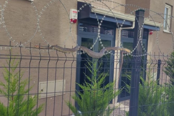 Nilüfer ilçesi Kurtuluş Mahallesindeki bir sitenin bahçe tellerine sarılı halde görülen yılan korku dolu anlar yaşattı. Zehirli olabileceği ihtimaline karşı kimsenin yaklaşamadığı yılanın nasıl oraya geldiği bilinmezken, itfaiye ekipleri yılanı bulunduğu yerden aldı. Jiletli teller sebebiyle ilerleyemeyen yılan, ekipler tarafından doğal ortamına salındı. Vatandaşlar ise, 1,5 metre boyundaki yılanın ekipler tarafından kurtarılmasını tedirgin gözlerle camlardan izledi.