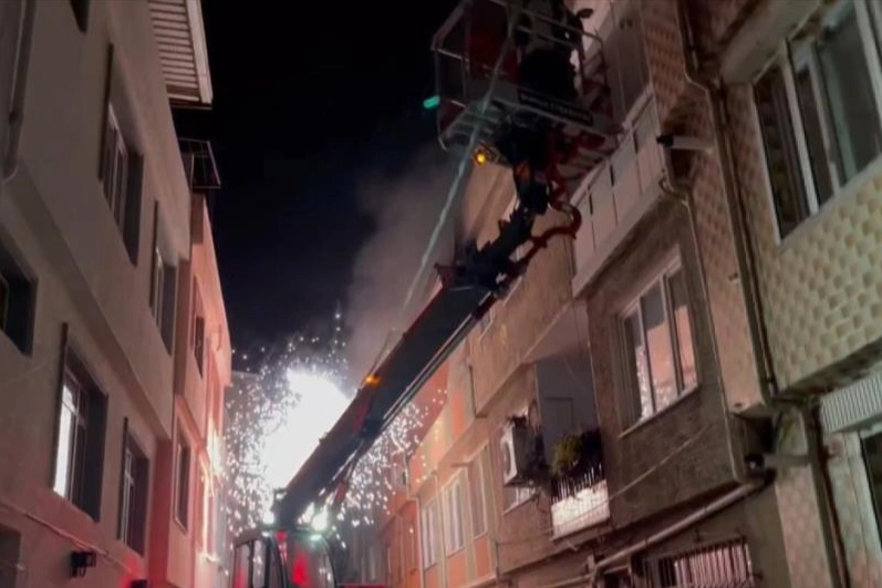 Elektrik teli koptu, sokak bir anda aydınlandıYangına müdahale eden ekiplerin üzerine, sokakta bulunan elektrik hattının telleri düştü. Kıvılcım çıkaran teller sokağı aydınlatırken, korku dolu anlar saniye saniye kameraya yansıdı. Yangın, itfaiye ekiplerinin müdahalesiyle kontrol altına alınarak söndürüldü. Yangının çıkış sebebi araştırılıyor.