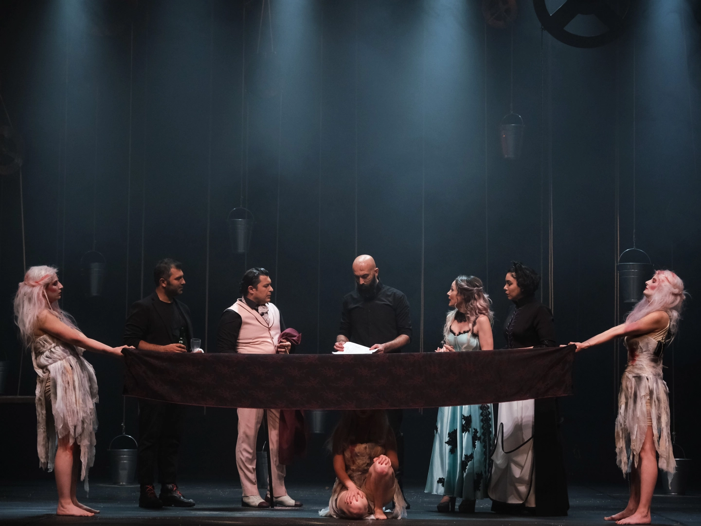 Kötülüğün tuzağında adalet terazisi bozulan bir dünyada, kuşku adlı kıvılcımın kıskançlık denen zehirli bir ateşe dönüşüp aklı, zihni, ruhu yakıp kavurmasının anlatıldığı oyunda; Nurettin Örük, Salih Cem Şener, Rabia Tutal, Çağrı Dulun, Adnan Tunalı, Mert Çifçi, Diyar Gönülalçak, Ali Bircan Teke, Acan Ağır Aksoy, Çağrı Zora, Nergiz Acar, Işıl Öztürk Sehlikoğlu, Sıdıka Derya Gümral, Emine Irmak Bavkır, Öykü Esendemir Örük, Ceren Kayış, İpek, Abama, Baran Balkanlar rol alıyor. Dekor tasarımı Murat Gülmez, kostüm tasarımı Fatma Sarıkurt, ışık tasarımı Sinan Mahçup imzası taşıyor.