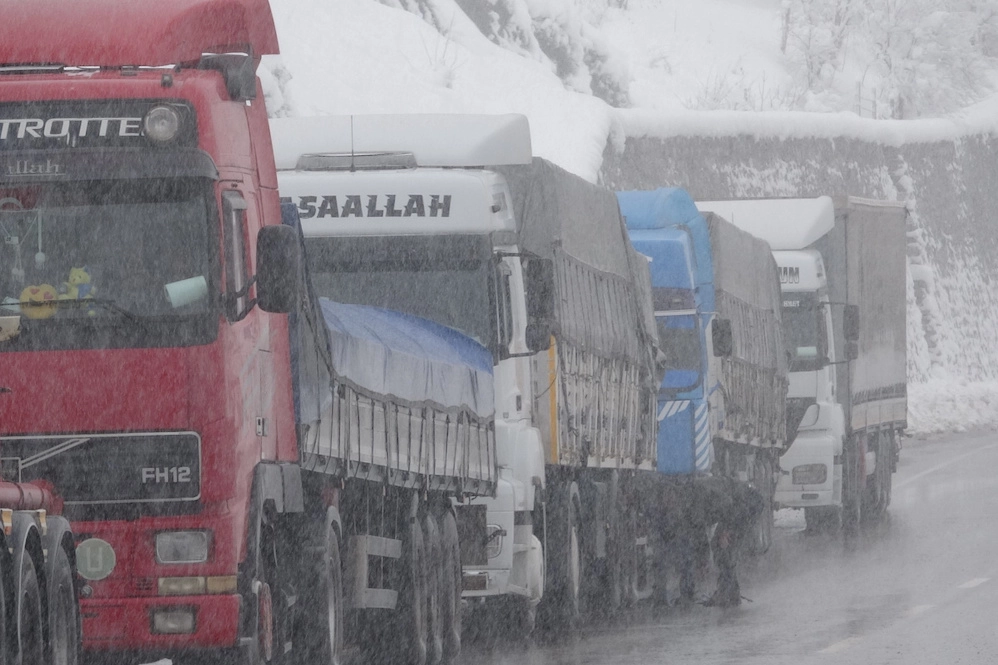 Yalova-Bursa arasındaki yoğun kar yağışı nedeniyle Dürdane rampası TIR trafiğine kapatıldı.