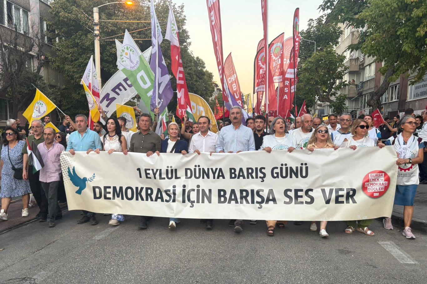 Bursa Emek ve Demokrasi Güçlerinin çağrısıyla bir araya gelen yüzlerce kişi Kent Meydanı’ndan eski Atatürk stadyumuna yürüdü. Yapılan açıklamada, "Savaş politikaları son bulsun, toplumsal barışın yolu açılsın" denildi.