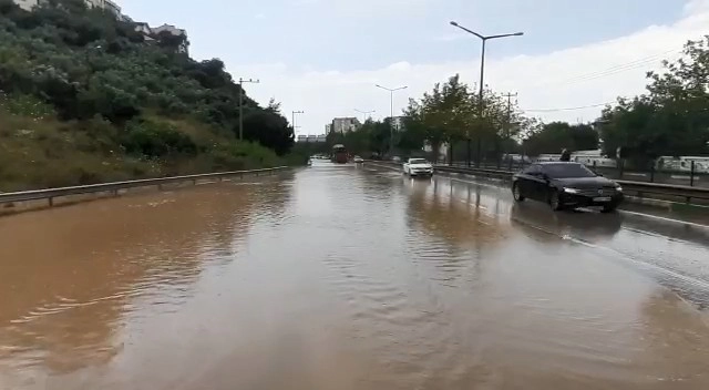 Bursa'da kısa süreliğine etkili olan sağanak yağmur, hayatı olumsuz etkiledi. Bursa-İstanbul yolunun en yoğun olduğu Gemlik ilçesinde ana yolda suyun birikmesi sürücülere zor anlar yaşattı.