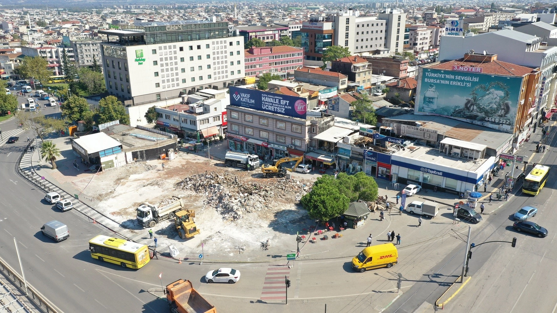 Bursa’da Kent Meydanı’nın doğu cephesinde yer alan ve görüntü kirliliğine yol açan 64 bina, Büyükşehir Belediyesi tarafından ‘kamulaştırılarak’ yıkıldı.