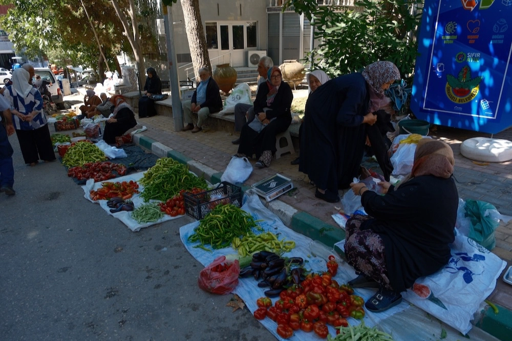 Her çiftçi kendi yetiştirdiği ve getirdiği ürünü satıyor. Bazen bir tezgahta çiftçinin o güne kadar ürettiği 5 salatalık ya da bir kilogram domates görülüyor, bazen bir üretici sadece 2 salkım üzüm getiriyor.