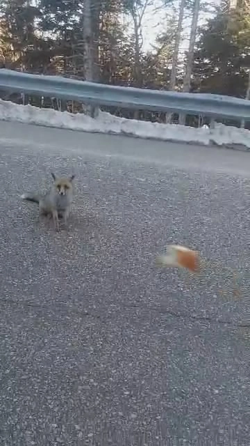 Öte yandan, gece saatlerinde otomobiliyle Uludağ’dan inen başka bir vatandaş ise yolda gördüğü aç tilkiyi elleriyle besleyerek o anları kayda aldı.