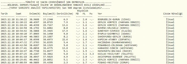 Sabah saat 08:29'da Marmara Denizi'nde (Gemlik Körfezi) meydana gelen 2.3'lik depremin ardından saat 10:25'te Gemlik Şahinyurdu'nda 2.1 büyüklüğünde deprem meydana geldi. Daha sonra ise Marmara Denizi'nde (Gemlik Körfezi) saat 11:18 ve 11:20'de olmak üzere 1.6 ve 1.1 olmak üzere 2 sarsıntı daha meydana geldi.
