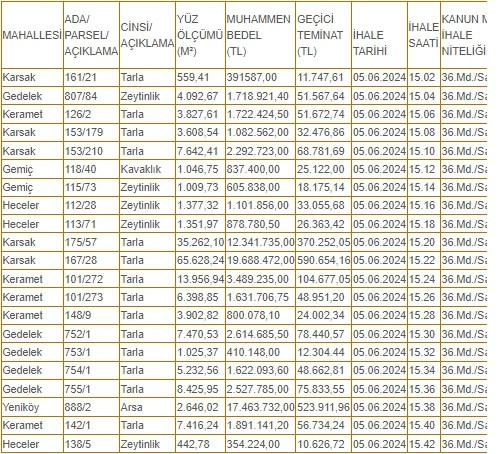 Orhangazi Belediyesi’nden Kamu İhale Kurumu’na bildirilen satış kararına göre Karsak, Gedelek, Keramet, Gemiç, Heceler ve Yeniköy Mahallelerinde yer alan 21 adet taşınmazı satışa çıkarıyor. Farklı metrekarelerdeki arsaların satışları ise 5 Haziran tarihine Orhangazi Belediyesi Encümeni tarafından yapılacak.