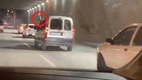 Bursa’nın merkez Yıldırım ilçesinde trafikte ilerleyen düğün konvoyu, klakson çalarak çevredekileri rahatsız etti. Otosansit Kavşağı yakınlarındaki tünele girdiklerindeyse tehlike büyüdü. Araçtan çıkarılan silah havaya doğrultuldu ve bir anda arka arkaya ateşlendi. O esnada seyir halinde olan bazı araçlar ani fren yaptı. Tehlike dolu anlar bir başka sürücünün cep telefonuyla görüntülendi.
