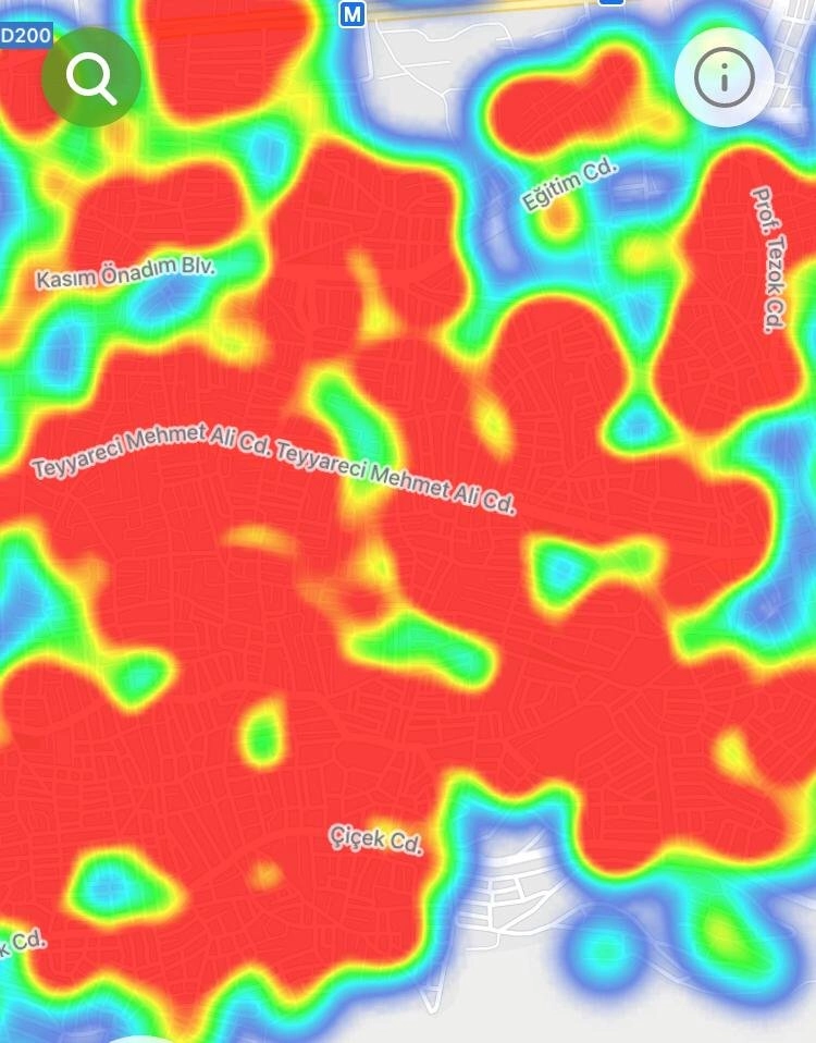 Şehrin hemen hemen tüm noktalarında kırmızı rengin fazlalığı dikkat çekti.