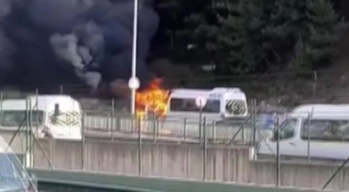 Bursa'da işçileri taşıyan servis yandı, servisteki işçiler son anda kurtuldu.