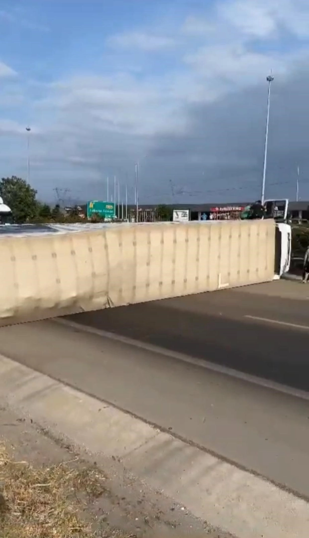 Bir süre savrulan tır anayolda yan yatıp tüm şeritlerin tamamen kapanmasına neden oldu. Çevredekilerin yardımıyla çıkarılan sürücünün şans eseri burnu bile kanamazken, trafiğin uzun süre aksamasına neden olan kazayla ilgili tahkikat başlatıldı.