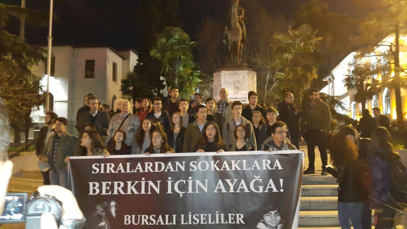 [gallery ids="11242,11243"] Gezi İsyanı sırasında İstanbul’da evinden ekmek almak için çıktığı sırada 16 Haziran 2013’te polisin attığı gaz fişeğinin kafasına isabet etmesiyle yaralanarak 269 gün komada kaldıktan sonra 11 Mart 2014’te hayata veda eden Berkin Elvan Bursalı Liseliler tarafından unutulmadı. Dün (11 Mart) 18.30’da Setbaşı’nda toplanan Bursalı Liseliler Heykel’e yürüyerek Berkin Elvan’ı andı. Heykel’de liseliler adına açıklama yapan Zilan Oruç, Berkin’in ölümünün üzerinden 999 gün geçtiğini ve bu sürede açılan soruşturmaların halktan gizlendiğini, tek bir dava dahi açılmadığını ifade etti. Dönemin Başbakanı Tayyip Erdoğan’ın ‘Polise emri ben verdim’ ifadesini hatırlatan Oruç, Berkin’in katledilmesini meşrulaştırma çabalarına girildiğini, Berkin’in anısını yaşatmaya çalışanları terörist ilan ettiğini söyledi, ‘Katilleri tanıyoruz, hesap soracağız!’ dedi.
