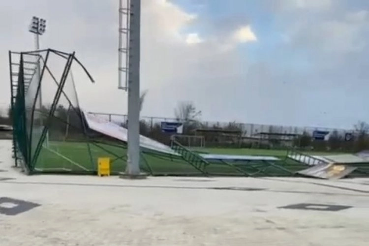 Bursa’nın İnegöl ilçesi kırsal Cerrah Mahallesi’nde yapımı tamamlanarak açılan futbol tesisi, şiddetli lodos nedeniyle hasar gördü.