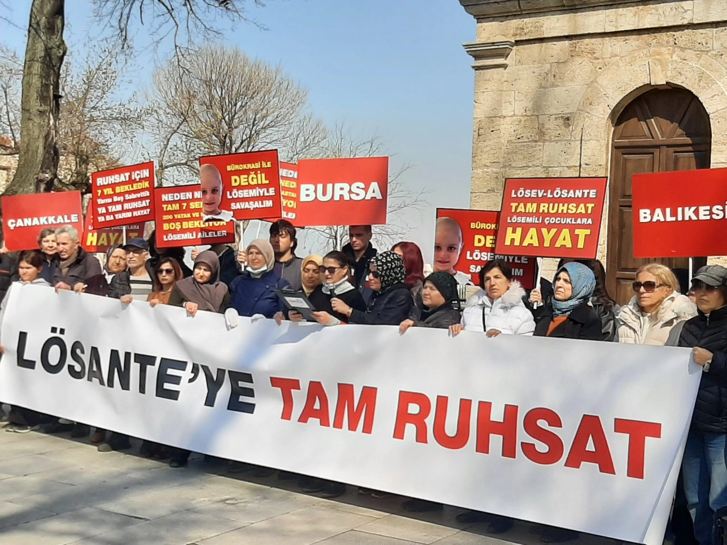 LÖSEV Aileleri, LÖSANTE Hastanesine 7 yıldır verilmeyen tam ruhsat konusunda çocuklarının sesi olmak için Türkiye'nin dört bir yanında eş zamanlı basın bildirisi okudu. Bursa'da lösemili çocukların aileleri, Sağlık Bakanı Fahrettin Koca’nın “lösemili hastaları istismar ediyorlar” açıklamasına ilişkin “Bu üslup lösemili çocuklarımızı ve biz aileleri çok yaraladı. LÖSEV en büyük destekçimiz, ailemiz gibidir” dedi.