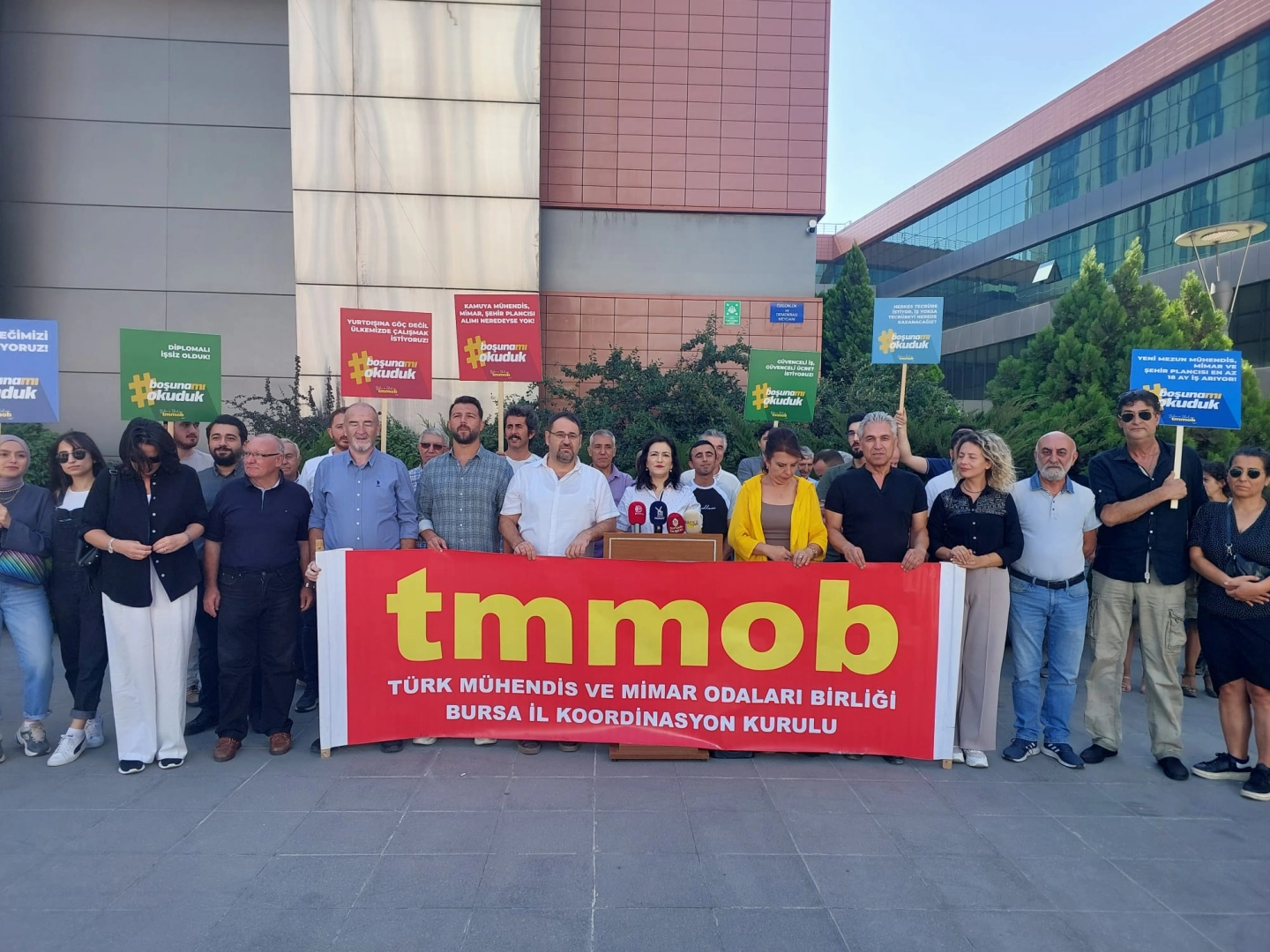 "İşsizlik, hayat pahalılığı, güvencesizlik ve örgütlenme sorunları sürüyor"TMMOB Bursa İl Koordinasyon Kurulu adına İKK Sekreteri Şirin Rodoplu Şimşek tarafından yapılan açıklamada toplumun yaşadığı koşullara da dikkat çekilerek işsizlik, hayat pahalılığı, düşük ücretler, güvencesizlik, özlük hakları ve örgütlenme sorunlarının mühendis, mimar ve şehir plancılarının hala en öncelikli sorunları olmaya devam ettiği vurgulandı.