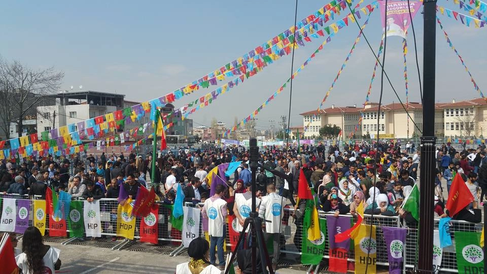 Operasyonlara, gözaltılara rağman Newroz ateşi Bursa'da yakıldı. Bursa halkı diktatörlüe geçit vermeyeceğini meydanlarda haykırdı. Pek çok kentte binlerce kişiyle kutlanan Newroz Bursa'da da Arabayatağı Pazar alanında toplanan halkın halaylarıyla, sloganlarıyla karşılandı. Yapılan saygı duruşunun sonrasında halk, sahne alan sanatçıların şarkılarıyla halaylarda buluştu. [video width="848" height="480" mp4="http://www.bursamuhalif.com/static/2017/03/WhatsApp-Video-2017-03-21-at-14.58.10.mp4"][/video] Alanda yer alan 'hayır' flamalarıyla 16 Nisan'daki başkanlık anayasasına karşı halk tavrını da ortaya koyarken, Newroz alanı halaylar ve sloganlarla coşku içindeydi. Binlerce insanın katıldığı Newroz'da ilk olarak sahneye çıkan HDP Eş Genel Başkan Yardımcısı Serpil Kemalbay, Newroz'un tarihçesini anlattı ve "Zalimlere karşı, Newroz'un direniş ruhunu yükselteceğiz" dedi.