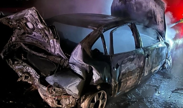 Bursa'nın Mustafakemalpaşa ilçesinde çarpışan 2 otomobilden 1'i alev aldı, kazada 3'ü çocuk 7 kişi yaralandı.