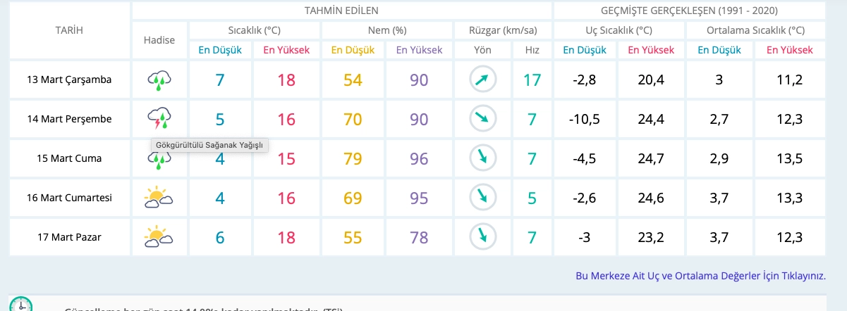 Meteoroloji genel Müdürlüğü'nün 5 günlük tahminlerine göre Bursa'da hafta sonu yağış yok. Sıcaklıklarda da bariz bir değişim beklenmiyor.