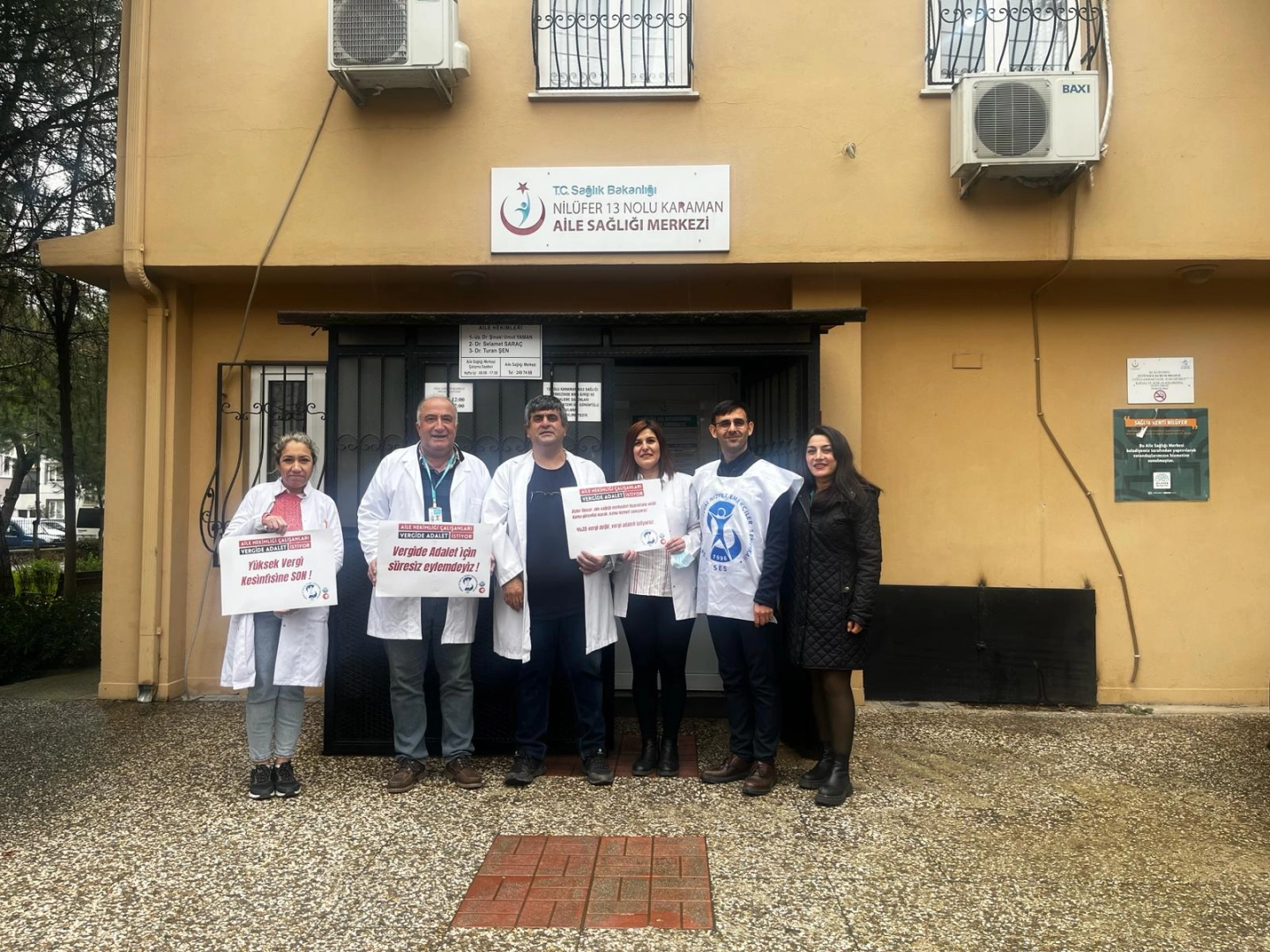 TTB Aile Hekimliği Kolu (AHEK) ile SES Bursa Şubesi, Bursa’da Aile Sağlık Merkezleri önünde vergide adalet talebiyle başlattığı eylem 5'inci haftasını geride bıraktı.