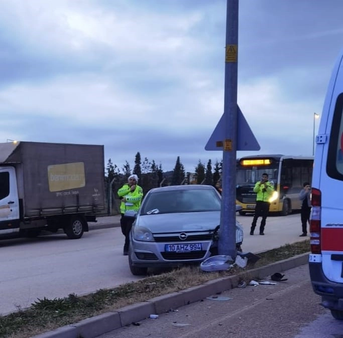 Kaza, saat 18.00 sıralarında Baykoca Mahallesi Yeni İnegöl Caddesi üzerinde meydana geldi. Emran D. (29) idaresindeki 10 AHZ 994 plakalı otomobil sürücüsünün kontrolünden çıkarak yoldan karşıya geçmeye çalışan 2 yayaya ardından aydınlatma direğine çarptı. Kaza sonucu otomobil sürücüsü ve 1 aylık bebeği Leyla, yayalar Emirhan İ. (11) ve Alperen S. (15) yaralandı. Yaralılar kaza yerine sevk edilen ambulansla İnegöl Devlet Hastanesine kaldırıldı. Polis kazayla ilgili soruşturma başlattı.