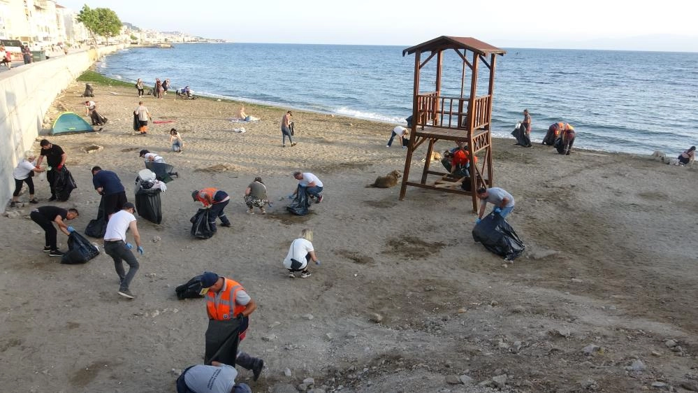 Mudanya Belediye Başkanı Deniz Dalgıç ve belediyede çalışan personeller vatandaşların bayram tatilince kirlettiği Güzelyalı Sahili’ni temizledi.