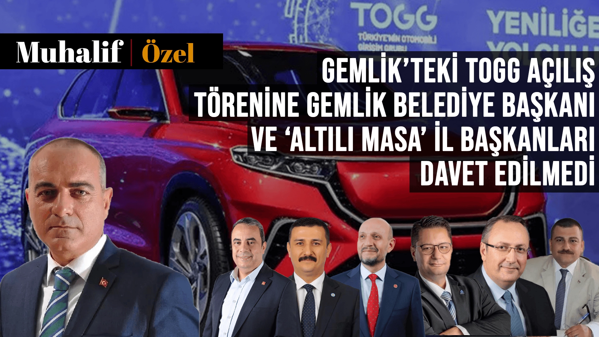 Cumhuriyet Bayramı’nın kutlanacağı 29 Ekim’de Türkiye’nin Otomobili Girişim Grubu AŞ’nin (TOGG) Gemlik Kampüsü’nün açılış töreni düzenlenecek. AKP'li Cumhurbaşkanı Recep Tayyip Erdoğan tarafından yapılacak açılışa Kemal Kılıçdaroğlu ve Meral Akşener'in de davet edildiği belirtilmişti. Ancak Bursa'nın Gemlik ilçesinde gerçekleşecek törene 'altılı masa'yı temsil eden hiçbir il başkanının davet edilmediği ortaya çıktı.