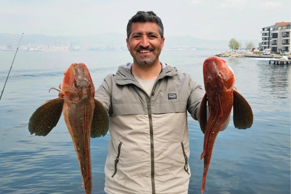 Bursa'nın İnegöl ilçesine yaşayan ve amatör balıkçılık yapan Şaban Kılıçcı, Kocaeli'nin Gölcük ilçesinde 1 saat arayla toplamda 6 buçuk kilo ağırlığında iki kırlangıç balığı yakaladı. O anları amatör kamera ile kaydeden Kılıçcı, mutlu olduğunu belirtti.