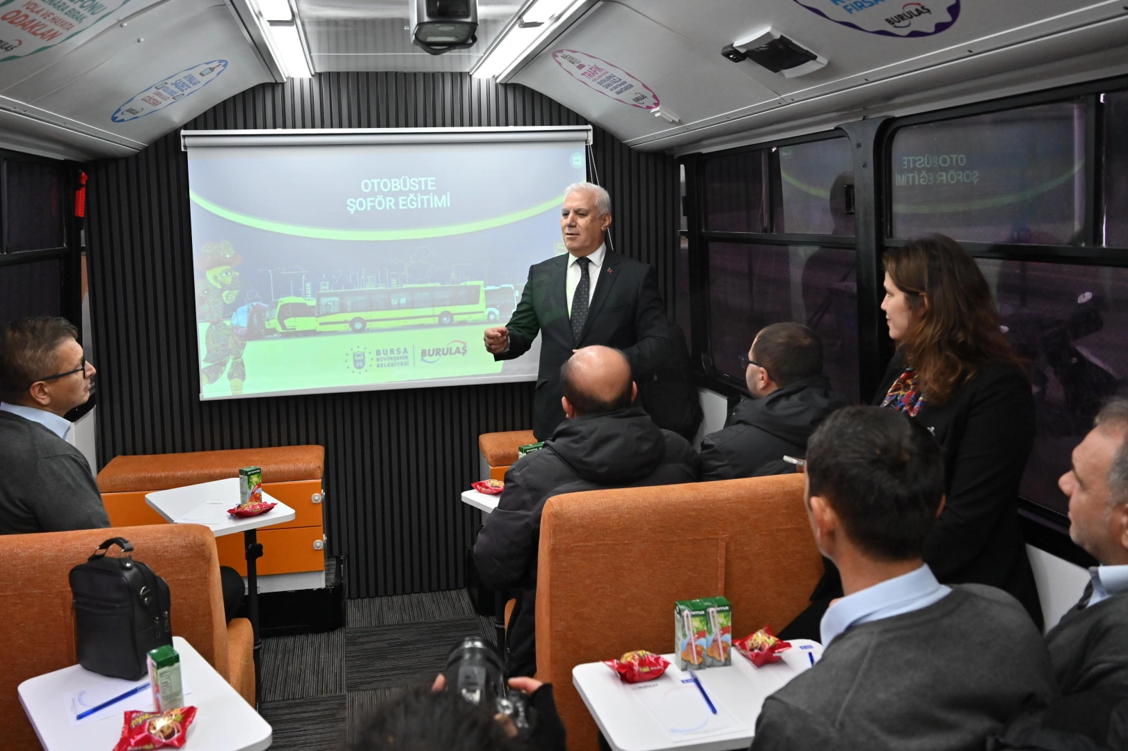 Özel halk otobüsleri de dahil olmak üzere Bursa’da görev yapan yaklaşık 4500 otobüs şoförüne görev yerlerinde, mobil sınıf ortamı içerisinde eğitimler veriliyor. Eğitimler, BURULAŞ’ın uzman eğitmen kadrosu ve yöneticileri, Büyükşehir Belediyesi’nin ilgili başkanlıklarının temsilcileri ve sivil toplum kuruluşlarının temsilcileri tarafından veriliyor. Program kapsamında şoförler, ayrıcalıklı ve dezavantajlı yolculara davranış, stres yönetimi ve öfke kontrolü, müşteri odaklı hizmet, temel ilk yardım, iş sağlığı ve güvenliği, çevre koruma, güvenli sürüş teknikleri, bağımlılıkla mücadele ve farkındalık, kent tarihi ve tanıtımı gibi konularda bilgilendiriliyor. Ayrıca mobil eğitim aracında hazırlanan ayrı bir odada şoförlerin psikologlarla birebir görüşmesi de sağlanıyor. Bursa’daki tüm otobüs şoförlerine ulaştırılacak olan eğitimlerle, sürücülerin hem bilinçli araç kullanmaları hem de vatandaşlarla daha sağlıklı diyalog kurmaları amaçlanıyor.