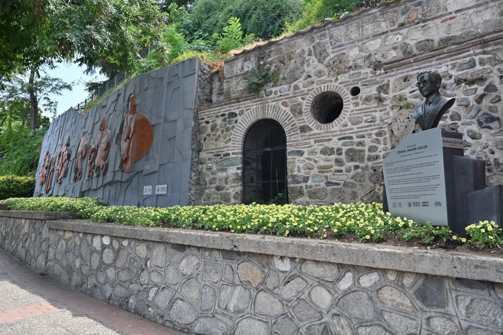 Bursa’da sanata ve sanatçıya sahip çıkarak kentin kültürel değerlerini gelecek nesillere aktarma hedefiyle çalışmalarını sürdüren Büyükşehir Belediyesi, Bursa’nın yetiştirdiği ünlü karikatürist Cemal Nadir Güler’in anısını yaşatıyor. Geçtiğimiz aylarda ‘Cemal Nadir Evine Dönüyor’ başlıklı sergiyi Bursalılarla buluşturan Büyükşehir Belediyesi, şimdi de usta sanatçının zaman içinde ortadan kaybolan büstünü yeniledi. Kent Tarihi Araştırmaları ve Arşiv Şube Müdürlüğü koordinasyonunda yürütülen çalışma kapsamında Heykeltıraş Burak Söyler’e yaptırılan büst, sanatçının doğum gününde Bursalılarla buluşturuldu. Cemal Nadir Caddesi üzerindeki büstün kaidesindeki imla hataları da düzeltilerek özgün haliyle yeniden yazıldı. Bursa Büyükşehir Belediyesi Park ve Bahçeler Dairesi Başkanlığı’na bağlı Kent Estetiği Şube Müdürlüğü ekipleri de sanatçının ünlü karikatür tiplemelerinin yer aldığı anı duvarını sil baştan yeniledi. Gravür yüzeylerinde detaylı onarım, bakım, boya ve temizlik işlemleri yapan ekipler, bitkisel düzenleme, budama ve yeşil alan bakımlarını tamamladı. Bursa’nın tarım ve sanayi kenti olduğu kadar bir kültür ve sanat kenti de olduğunu söyleyen Büyükşehir Belediye Başkanı Mustafa Bozbey, Bursa’nın yetiştirdiği tüm değerlere sahip çıktıklarını belirtti. Kentin zengin bir kültürel altyapıya sahip olduğunu ifade eden Başkan Bozbey, “Bursa, tarihiyle, kültürüyle ve sanatıyla öne çıkan kentlerin başında geliyor. Birçok değerimiz var. Usta karikatürist Cemal Nadir Güler de bu değerlerimizden birisidir. Onun anısını yaşatmak ve gelecek nesillere aktarmak amacıyla ortadan kaybolan büstünü yeniledik. Doğum gününde de Bursalıların ziyaretine sunduk. Sanatçı adına oluşturulan anı duvarını da daha estetik ve görünür hale getirdik. Bizler, Bursa’nın yetiştirdiği veya yaşamının bir bölümünü Bursa’da geçirmiş sanatçılarımızı önce Bursalılara tanıtmak ve buluşturmak istiyoruz. Sanatı ve sanatçıyı desteklemeye devam edeceğiz. Cemal Nadir Güler’in anısına yeniden hazırlanan büst ve anı duvarı Bursalılara hayırlı olsun” dedi.
